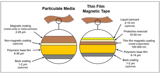 - Dee, R.H. Magnetic Tape for Data Storage: An Enduring Technology. Proc. IEEE 2008, 96, 1775–1785. [Google Scholar] [CrossRef]