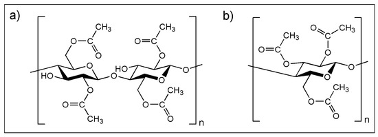 - Tosh, B. Thermal analysis of cellulose esters prepared from different molecular weight fractions of high a-cellulose pulp. Indian J. Chem. Technol. 2011, 18, 451–457. [Google Scholar]