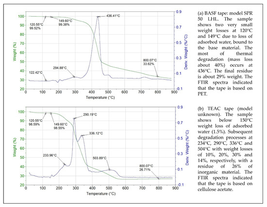 - Davis, A.R.; Monroe, E.; France, F.G. Understanding Magnetic Tape Degradation by Polymeric and Material Testing. In Proceedings of the Audio Engineering Society Conference: 2018 AES International Conference on Audio Archiving, Preservation and Restoration, New York, NY, USA, 28–30 June 2018. [Google Scholar]