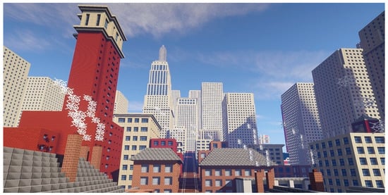 While scientific studies [73,76] and hands-on projects [77,78] have explored the educational capacity of Minecraft and its potential to engage with the wider public, in the context of heritage communication there is no specific analysis linking Minecraft’s capacity to represent the built heritage environment with its potential and limitations in technical and functional terms. However, previous investigations have dealt with its voxel-based representation nature, highlighting that low-resolution in Minecraft simplifies the gameplay mechanics and softens the users’ learning curve [79], turning the videogame into a suitable tool for a wide range of different areas, such as education, urban planning, computer arts, or chemistry [80].