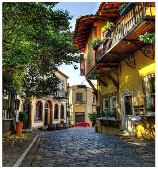 Nowadays, Xanthi is a modern cosmopolitan and multicultural city that is rich in history, traditions and customs, and is the cultural center of the area. Xanthi has a large population of Turkish-speaking Muslims dating back to the Ottoman period. In this multicultural environment, the different ethnic groups lived and worked together, contributing to the social and cultural mixture of Xanthi. The city of Xanthi has been characterized as “the city of the thousand colors” [34]. Xanthi’s old town still preserves its traditional characteristics. The people and authorities of Xanthi have succeeded in maintaining its color and physiognomies just as they were at the time of its creation. Its rich architecture presents the opportunity to go back in time and at the same time understand the local way of living. Its cobbled streets and the old traditional houses not only have escaped from modern construction trends, but they are also renovated and preserved by the locals [35].