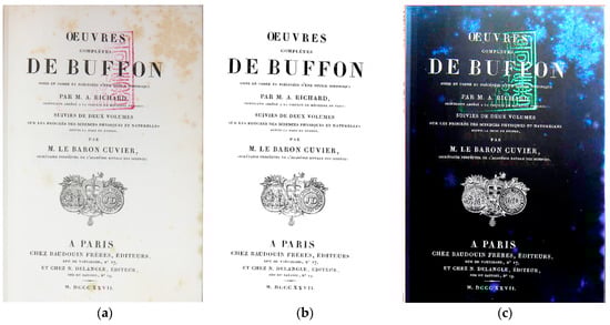 - Krstić, D.; Schauperl, Z. Characterization of Foxing Stains on Eighteenth Century Books. HDKBR INFO Mag. 2013, 3, 32–39. Available online: https://hrcak.srce.hr/148794 (accessed on 12 July 2019).