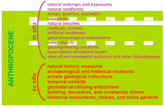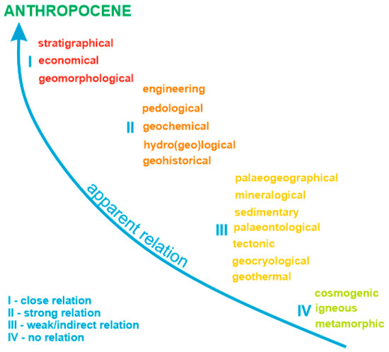 Figure 2. The relevance of geoheritage types to the Anthropocene (the classification [53] is adopted with small modifications).