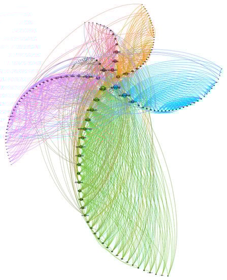 Intuitively, when we look at the visualizations of the networks in Figure 1, Figure 2, Figure 3, Figure 4, Figure 5, Figure 6 and Figure 7, we can see by eye that the subcommunities within each network are distributed in what appear to be interesting ways. Recall that these networks are formed by projecting the most probable image–tag pairs and their probability into a network where tags are connected to other tags by virtue of being assigned to the same photograph. The metrics listed in Table 9 capture the topologies of these networks.