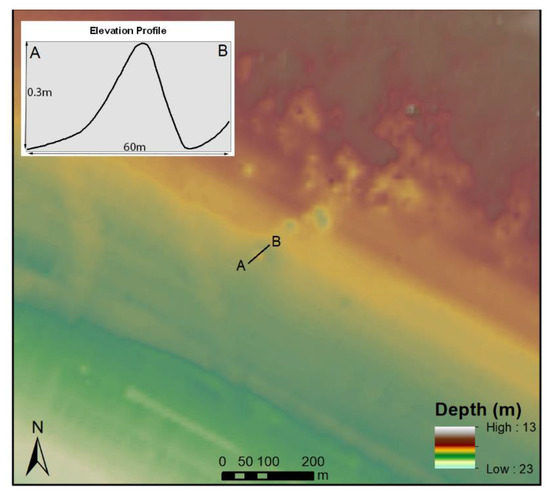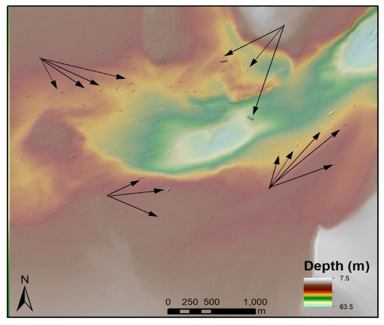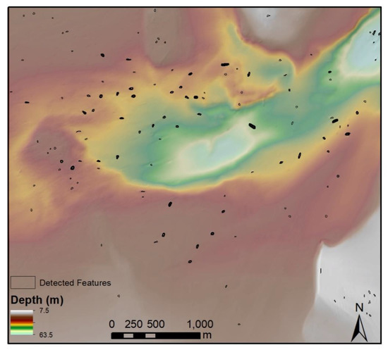 Archaeologists have shown that multibeam systems can detect archaeological sites at great depths (≥300 m; e.g., [27]) and in a variety of environments, but often require resolutions of less than 2 m to detect smaller objects [67]. Nonetheless, for the detection of shipwrecks and other large-scale deposits, this technology has proven effective [10,11,26]. The use of these and similar methods for underwater investigation is widespread among archaeologists, as are methods of analyzing these datasets [11,12,64].