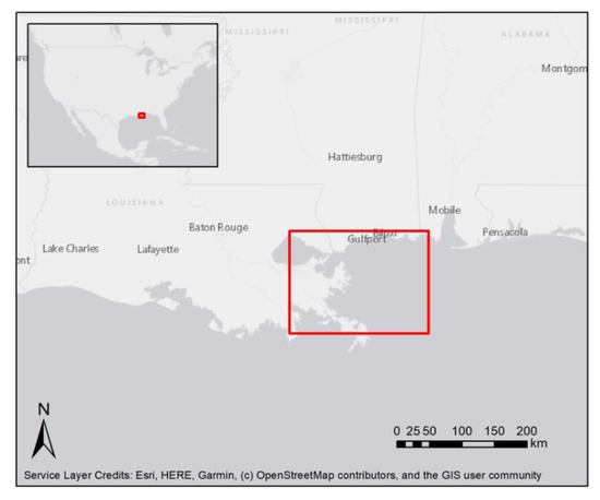 For the Long Island and Massachusetts study regions, the root mean square error of the data ranges from 15 to 20 cm. This dataset is available for most of the Eastern Seaboard of the United States. The downloaded files were prepared in GeoTIFF format using Nearest Neighbor interpolation, and we imported these files into ArcMap 10.7.1 [73] for analysis. These TBDSMs have a spatial resolution of 1 m and an average vertical accuracy of 15 cm. For the Mississippi Delta, the 2016 CoNED dataset was unavailable, and so we used the 2014 CoNED TBDSM. This dataset has a lower spatial resolution (3 m) but was created in the same manner as the 2016 data. The root mean square error of the data ranges from 6 to 23.5 cm.