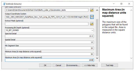 Chosen parameters for inverse depression analysis using the sinkhole extractor tool in the Sinkhole Extraction Analyst Toolbox [83,84].