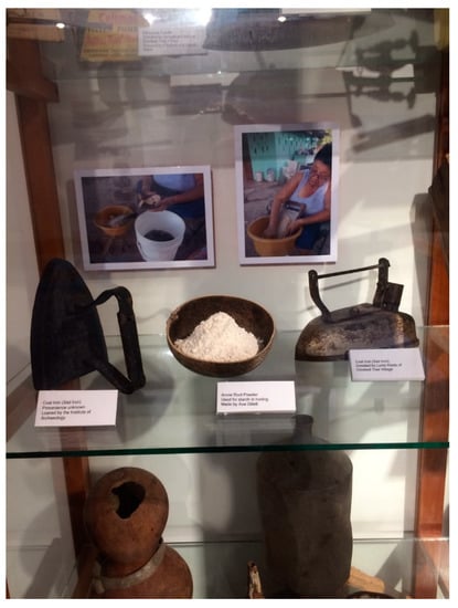 Example of a display in the Crooked Tree Museum and Cultural Heritage Center showing the traditional processing of arrowroot (M. arundinacea) into starch used for ironing clothing.
