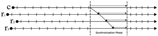 Mock et al. [29] propose an algorithm that is based on the synchronization process implemented on the IEEE 802.11 protocol, appropriate for real-time applications on wireless communication networks. The algorithm is based on the master–slave model of operation where the slave nodes synchronize to the master’s clock. Broadcast-based communication is used and a total of two messages are transmitted for the synchronization to take place.