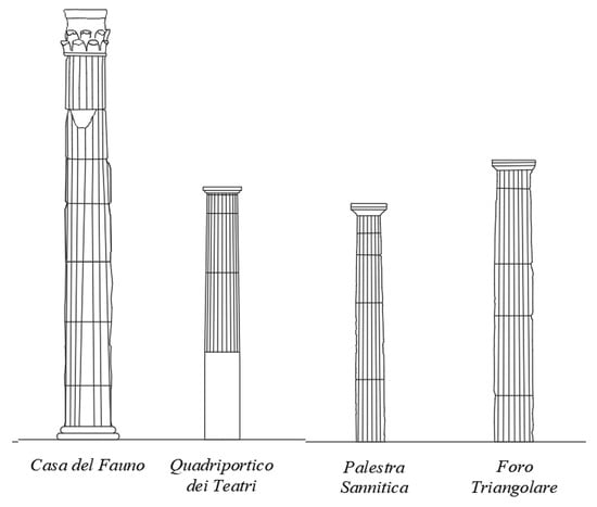 The present study focuses on grey-tuff free-standing columns in four areas of the site: Casa del Fauno at Regio VI and Quadriportico dei Teatri, Palestra Sannitica and Foro Triangolare at Regio VIII (Figure 1).
