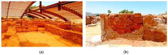 During the Minoan era, the construction with adobe as a building technique clearly appears, usually combined with stonework up to a certain height. This method was disseminated, developed, and adapted to the place, the historical context, and the general conditions (Figure 7).