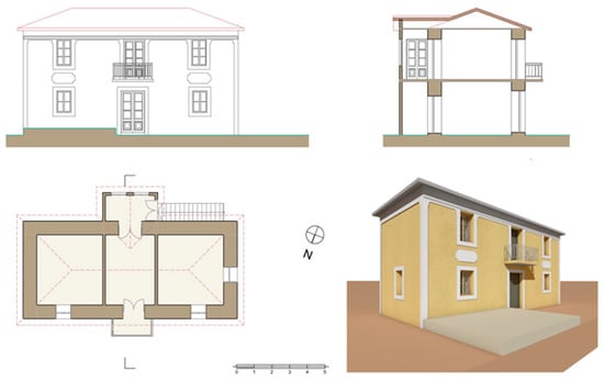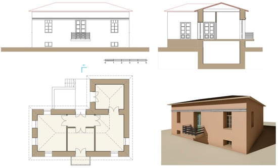 In this research, several buildings’ uses were found. Most of the constructions are settlements and some of them are industrial buildings, agricultural buildings, warehouses, and other buildings. The earth is used to make (a) adobe brick walls, (b) earth-binding mortars for brick and stone walls, and (c) coatings. Other materials to be used are local stone, timber, and reeds. As it is presented in drawing of Figure 33, Figure 34, Figure 35 and Figure 36, combinations of local materials and earth were used. The adobe walls are around 50 cm, and a wooden frame roof is usually covering the building. The following drawings, from different regions of Greece, give an idea of the scale of earthworks.