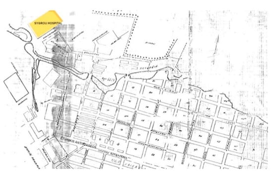 Kaisariani is an urban area and belongs to the Municipality of Athens, located three kilometers east of its center along the lower slopes of Mt. Hymettos. Kaisariani was first inhabited by refugees who came to Greece after the Asia Minor war in 1922; until then, most of the land was a pasture. Most of the refugees who inhabited there came from Smyrna and surrounding villages such as Vourla [24]. When Kaisariani joined the city plan in July 1923, it had an area of 231 acres. The first-arrived refugees began to be installed temporarily and partially in conical army tents near the Infectious Diseases Hospital of Syggrou (see Figure 47).