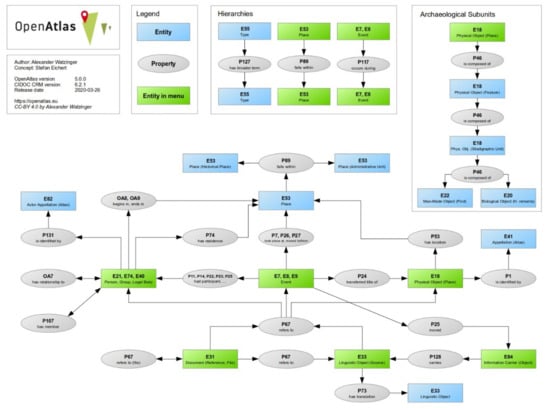 - Doerr, M.; Theodoridou, M.; Aspöck, E.; Masur, A. Mapping Archaeological Databases to CIDOC-CRM. In Proceedings of the 43rd Conference on Computer Applications and Quantitative Methods in Archaeology Keep The Revolution Going CAA, Siena, Italy, 30 March–2 April 2015; pp. 443–452. [Google Scholar]
