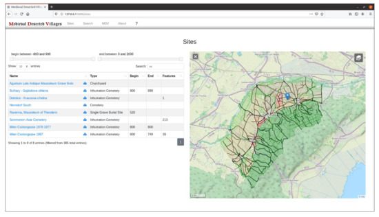 Thus, a large amount of burial data were collected in recent years within various research projects, by “re-engineering” the data from original and mainly printed publications, using OpenAtlas. To date, the database comprises about 500 burial sites from the Early Middle Ages with summaries of the sites themselves and their general interpretation as well as descriptions of each individual grave, the burials documented with anthropological data and all associated finds (Figure 1) [18]. Furthermore, all available classifications, values and digital objects (e.g., scans of figures of the respective entities) were stored digitally. Additionally, spatial information such as shape and position of all sites and graves were documented or determined.