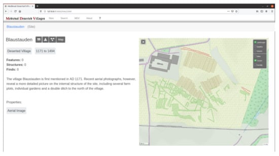Archaeological research has seen a constantly increasing integration of new methods, tools and techniques, such as web GIS, online databases and large-scale archaeological prospection in recent years [1,2,3,4,5,6,7,8,9,10]. This has led to countless new discoveries and deeper insights into known archaeological sites, including the consideration of the surrounding landscape on the basis of ever-growing areas and datasets [11,12,13,14,15]. However, this fast increase in mainly digital research data also makes the demand for structured data management and data exchange increasingly urgent. In this respect, web-based applications that are operated via conventional web browsers have several clear advantages. On the one hand, they offer the respective researchers the possibility to access and edit their research data anytime and anywhere, on the other hand, they offer a simple and intuitive option to exchange the data within a larger research community or even to present them to a broader public. In order to prepare these data sustainably and properly for unforeseen future applications, however, a clear data structure based on common, internationally recognized data standards is essential.