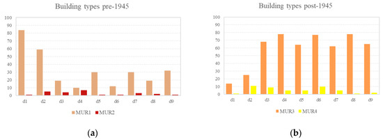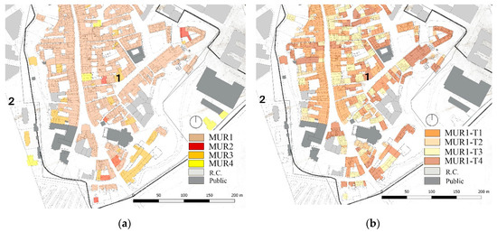 - MUR1-T4: 80–200 m2 surface; pre-1900 age; irregular shape and corner units; several internal partitions or presence of isolated masonry pillars; load-bearing masonry; timber or semirigid floors and roof.
