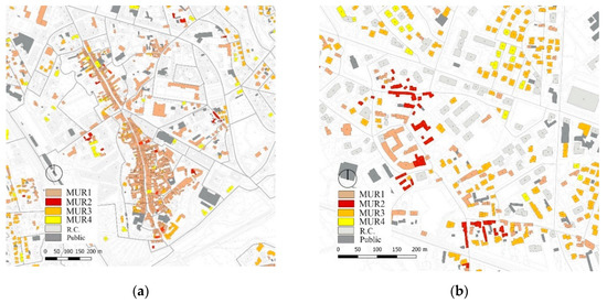 - MUR1-T2: <80 m2 surface; pre-1900 age; small regular square shape with few internal partitions; load-bearing masonry; timber floors and roof.