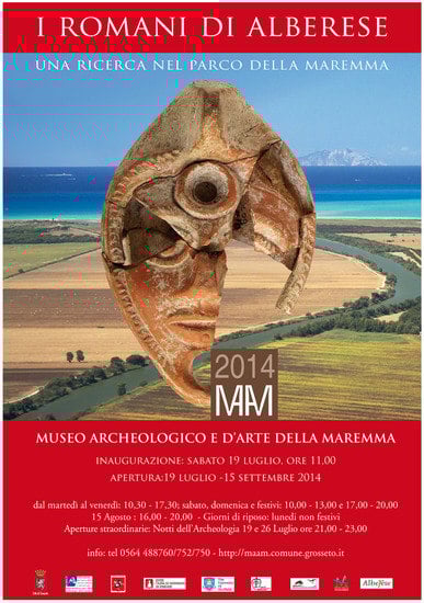 Banner of the Exhibit “I Romani di Alberese” opened in 2014 and showing the results of the excavations at Alberese.
