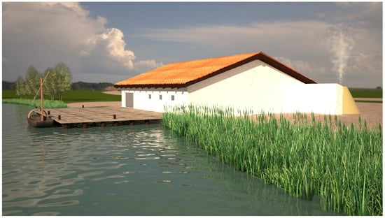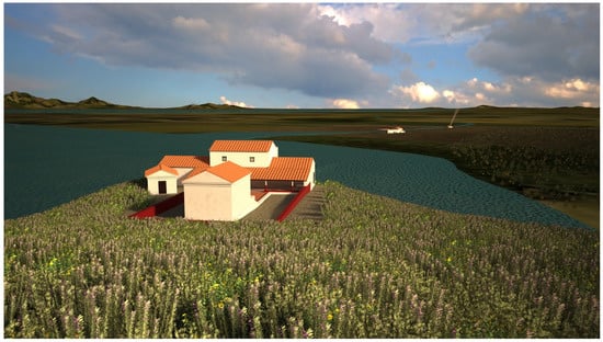 It is for this reason that we open a new direction in our development project for Podere Cannicci. Thanks to the generous support of a research grant from the Digital Scholarship Studio and Network (DSSN) at the University at Buffalo, in fact, the project was able to purchase two Oculus Quests. Our idea is to recreate a virtual and augmented reality environment, perfectly interactable for the user, where the Etruscan and Republican settlement comes back to life. The idea was suggested by a number of other applications of this technique or attempts to [,,]. The user should be able to walk through the different spaces that archaeology uncovered during the excavations, picking up objects, seeing and experiencing a virtual scenario where all the details are based on a precise, scientific reconstruction of the material culture and buildings. By developing a specific app for the Oculus Quest, visitors will be able to use their own devices, although some will be available onsite. In this way, by recreating the structures and life of the site, the project will overcome the limits that a humble settlement like Cannicci presents. The lack of monumentality can be compensated for by the virtual reconstruction of the spaces, of the people, and of the objects, still allowing some flexibility in updating the data (Figure 19 and Figure 20). In fact, we must keep in mind that this solution will allow for updates and ongoing development as we increase the number of reconstructions and keep pace with excavations. In this way, the maintenance and printing costs of traditional panels will certainly be reduced. At the same time, since virtual experiences do not require physical presence onsite, visitors will be able to interact with the Etruscan and Roman site at Cannicci remotely, from the comfort of their home. This part of the project was set to start during the 2020 research season at the Impero Project; however, the outbreak of Covid-19 forced us to cancel all activities. Nonetheless, our team is already working on the app and the reconstructions. We hope to deliver this innovative experience in summer 2021.