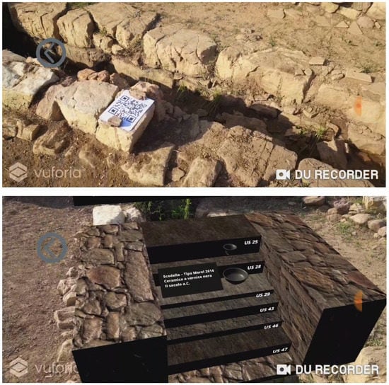 Once again, we relied heavily on digital tools. We faced the necessity of allowing people to visualize our work, how we date structures and sites, how we reconstruct historical landscapes, and how we uncover identities and make places. Think for a second of Pompeii or Herculaneum, or the Coliseum. These are quintessential, authentic places that transmit certain values from the past, identities that are preserved and shown daily to hundreds of thousands of tourists. Then we return to Podere Cannicci: humble stone foundations, melted mud bricks and shattered pottery vessels filling a large drain. The task of transmitting value to these features in terms of historical authenticity is enormous. Our rural settlement, the place where Sulla sealed his conquest of the ager Rusellanus, has no monumentality. Augmented reality helped us fill this void. Through the use of this technique, we were able to start a process of communicating our research and our historical vision of the past, our visual art. People now can see where votive offerings were found, or how we date our strata and why we use stratigraphy (Figure 18). We wanted to make our research reliable and understandable to everyone. This task will continue during the next seasons, when we will implement our holistic and technological approach to the historical reconstruction and dissemination of visual art.