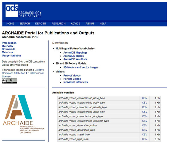 The ArchAIDE portal is available at the Archaeology Data Service of the University of York. Multilingual pottery vocabularies, 2D and 3D pottery models, and all the videos produced by ArchAIDE can be freely downloaded.