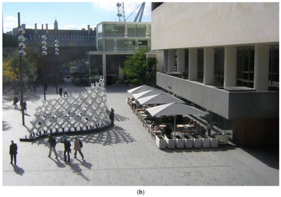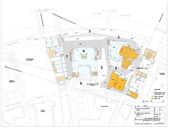 - Aelbrecht, P.S. The complex regeneration of post-war modernism: London’s Southbank Centre’s Masterplan. Urban Des. Int. 2017, 22, 331–348. [Google Scholar] [CrossRef]