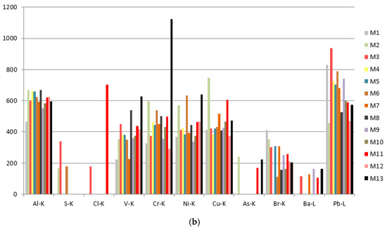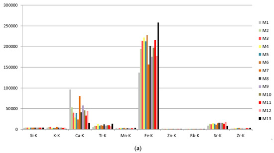 60]. This system has a SDD X-ray Amptek detector and a 75 W Mo X-ray tube. Measurements were undertaken at 45° X-ray detection for 180 s with 35 kV and 0.2 mA, the spot at the surface has 1 mm diameter.