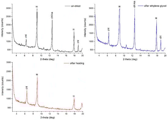 - Moore, D.M.; Reynolds, R.C., Jr. X-ray Diffraction and the Identification and Analysis of Clay Minerals; Oxford University Press: Oxford, UK, 1997; ISBN 9780195087130. [Google Scholar]