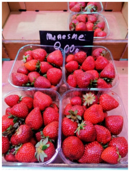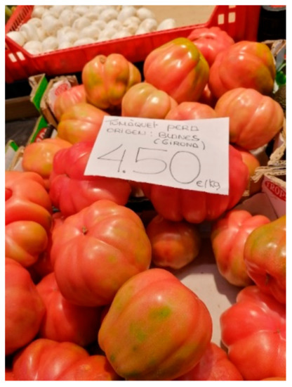 - Associació de Comerciants de la Plaça del Mercat de Girona. Mercat del Lleó. Available online: https://www.mercatlleo.cat/parades/fruita-verdura (accessed on 1 June 2021).