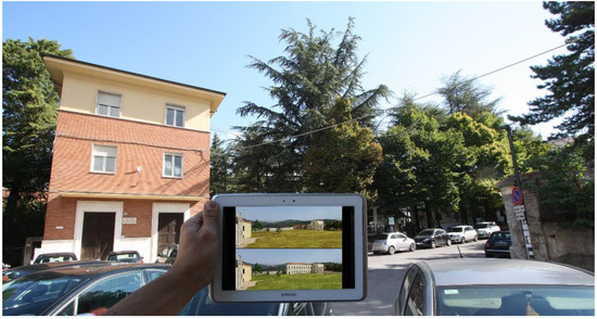 In conclusion, it appears clear that the study, and the telling, of history play an essential role. In this regard, to highlight the difference between the historical disciplines and the “history of architecture”, Gianfranco Spagnesi wrote: “If making ‘history’ always equates to knowing, the History of architecture can only be the knowledge of the physical space built by man, that is of current reality. Therefore, if we want to pose the problem of ‘knowing’ the current ‘reality’, we can only analyze the occurrence of the essential reasons that produced it in a temporal succession” [22] (p. 7), and he adds: “Knowledge of current reality is achieved through the recognition of some significant moments that produced it” (p. 8). Hence the choice underlying the experimentation proposed in this essay: the use of AR to visualize the configurations that buildings and urban spaces had in the past; not for an apology of what is no longer, but to understand and describe the transformations that led to the current configuration, and consequently highlight the present historical and architectural values of the artifacts.