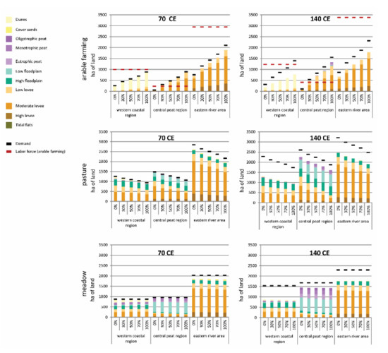 - Joyce, J. Modelling agricultural strategies in the Dutch Roman limes zone via agent-based modelling (ROMFARMS). In Finding the Limits of the Limes. Modelling Demography, Economy and Transport on the Edge of the Roman Empire; Verhagen, P., Joyce, J., Groenhuijzen, M.R., Eds.; Simulation Studies in Archaeology; Springer: New York, NY, USA, 2019; pp. 109–128. [Google Scholar]
