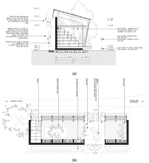 (a) Picture of the Bathhouse. Photo of Safe Haven Bath house, photo: Pasi Aalto, architecture: TYIN Tegnestue (Andreas G. Gjertsen, Yashar Hanstad), Available online: http://www.tyinarchitects.com/download/works/2009_safehavenbathhouse/01_safehavenbathhouse_photos_hires.Zip (accessed on 13 July 2021). (b) Picture of the Library. Photo of Safe Haven Library, photo: Pasi Aalto, architecture: TYIN Tegnestue (Andreas G. Gjertsen, Yashar Hanstad), Available online: http://www.tyinarchitects.com/download/works/2009_safehavenlibrary/01_safehavenlibrary_photos_hires.zip (accessed on 13 July 2021).