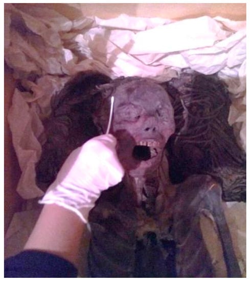- Hawass, Z.; Saleem, S. Computed tomography examination of the screaming mummy “Unknown-Woman-A”. Egypt. J. Radiol. Nucl. Med. 2020, 51, 139. [Google Scholar] [CrossRef]