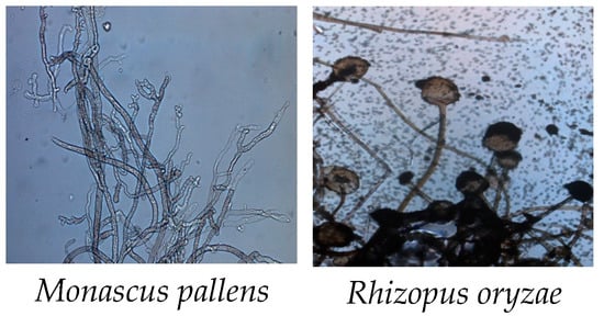 The resulting microbial colonies were subjected to preliminary characterization depending on the type of organism, as mentioned previously. The following genera were identified: bacillus, coccus and Rhizopus (Table 1 and Figure 3 and Figure 4).