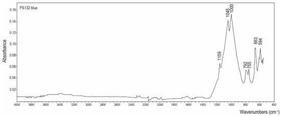 ATR-FTIR spectrum for blue paint from palette PS132 (F6147). Peaks indicate Egyptian blue [31].
