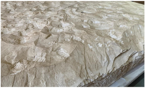 On the reverse of the stele, well-closed microfracture systems can be identified (Figure 4). These are clearly visible on the surface but are less visible transversely. Their spacing is pluricentimetric, with their lateral extension up to decimetric, extending over much of the stele. These fractures could be either syn-sedimentary or tectonic in origin.