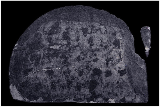 Finally, Figure 12 shows the picture obtained by overlapping the RGB image with the pattern obtained with the most significant BSS output. This method enables a sort of “virtual restoration” of the original heritage object, useful for its study and for making it more fully understandable to scholars and the general public.