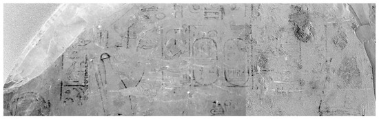 As described below, a different form of image processing based on the chromatic derivative imaging (ChromaDI) method allowed recovery of the readability of the stele (Figure 11). This method, developed by Pisa groups [19,20], exploits the subtraction of consecutive couples of four consecutive spectral images, namely, G-B, R-G, and IR-R.