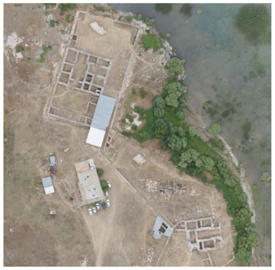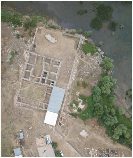 The palace consists of various structures. It mainly consists of the Great Palace on the north side of the site and the Small Palace on the south of it, a boat house on the shore of the lake and small pavilions surrounding it, the walls of an inner courtyard and other ruined structure the functions of which have not been known yet (Figure 3). The Great Palace in size of 50 m × 35 m is the largest building of the complex and consists of three main sections: a palace building, a courtyard and a terrace extending to the lake (Figure 4). The Small Palace also has a similar plan with thicker and more regular walls (Figure 5). Both buildings have a plan of large and small rooms on either side of an axis determined by an iwan once used as the throne room and the forecourt. The structures were constructed with rubble stone [38,39] (Figure 6).
