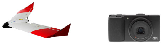 SmartPlanes Freya UAV (http://smartplanes.se/, accessed on 20 February 2018) (left); Ricoh GR camera (right).