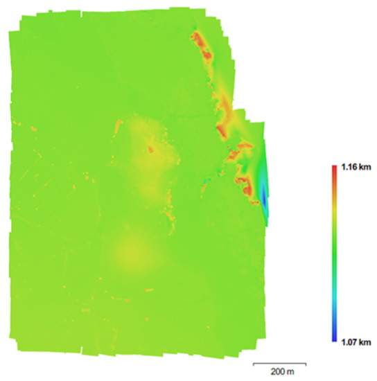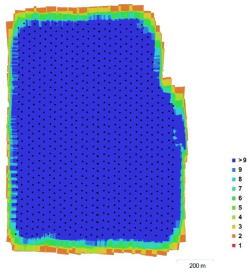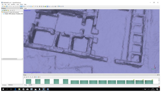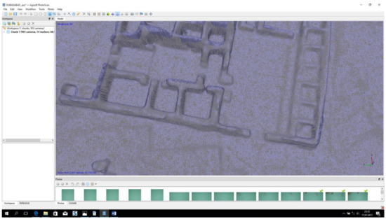 Appropriate aircraft image coverage is generally designed to provide about 60% forward overlap. This allows stereoscopic viewing of two overlapping images. Lateral overlap between 20% and 40% is required for complete area coverage. The usual overlap value cannot be directly used on the UAV system. In order to cover as much as possible of the area with the minimum number of images taken by the UAV system, it is necessary to investigate appropriate overlap values [42]. In this project, sidelap was 60% and overlap was 80% depending on the flight direction and archaeological area size (Table 1).