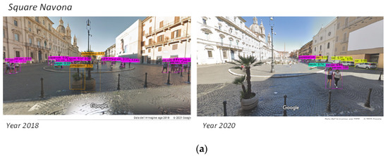 GSV’s images are not always constant over time and space, and therefore the selection of squares was also dictated by the availability and updates available online. The choice to acquire the images in two different periods (pre COVID-19 and full pandemic) was motivated by the need to have a comparative picture that is as truthful as possible.