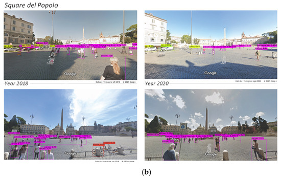 Square Navona (a) and square del Popolo (b), respectively, with two acquisitions from the years 2018 and 2020.