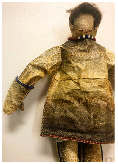 Alutiiq doll wearing a fish skin parka, gloves and boots. Alaska State Museum. Juneau, AK, USA. Artist: June Pardue. 2012.