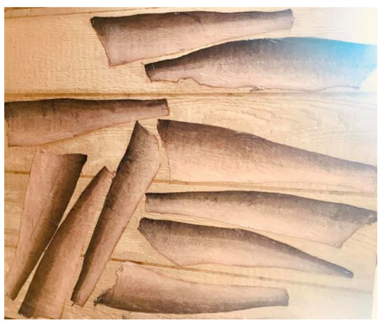 Alutiiq used the skin of salmons to construct resilient, windproof parkas (Figure 3), ideal for Kodiak’s maritime environment. A parka could be used as a bed, as a blanket and even as a house while travelling; that way, Alutiiqs were not afraid of damp, frost or wind [6]. Parkas were circulated through trade and travel and were regarded as coveted gifts. Festival hosts presented parkas to visitors at the end of winter gatherings. Before warfare, leaders distributed parkas to the members of their raiding party and parkas were considered valuable loot when taken from raided villages.