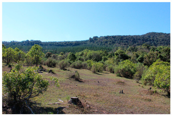 Thathe has been used for commercial forestry since 1945 [38]. The original extent of the sacred forest before commercialisation remains unknown. Based our conversations with Chief Netshidzivhe, who took us through parts of the landscape where they conduct rituals and ceremonies for the reburials of chiefs, we give an estimate of 40,000–50,000 hectares. Commercialisation resulted in pine timber plantations (Figure 4), which interfered with the common property tenurial system customary to the custodians of Thathe. They resisted, setting fire on plantations and uprooting pine seedlings. These acts of resistance were interpreted as anger by the spirits of Thathe, avenging the destruction of the sacred forest. Despite pleas from headman Netshidzivhe in 1949 to preserve parts of the forest, the South African government continued with the appropriation [37,38], such that the preserved sacred forest is now entirely surrounded by pine trees.