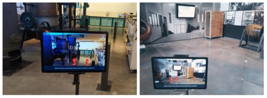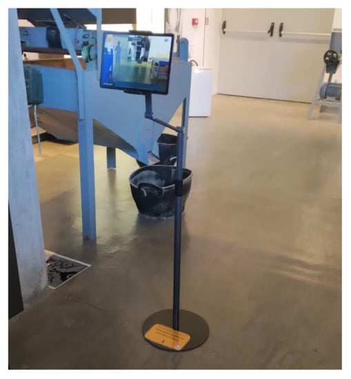 The AR app is available to museum visitors through AR-enabled tablet devices (Samsung Galaxy Tab 5) that are mounted on floor bases, as shown in Figure 3. These allow the tablet to be moved in the following degrees of freedom.