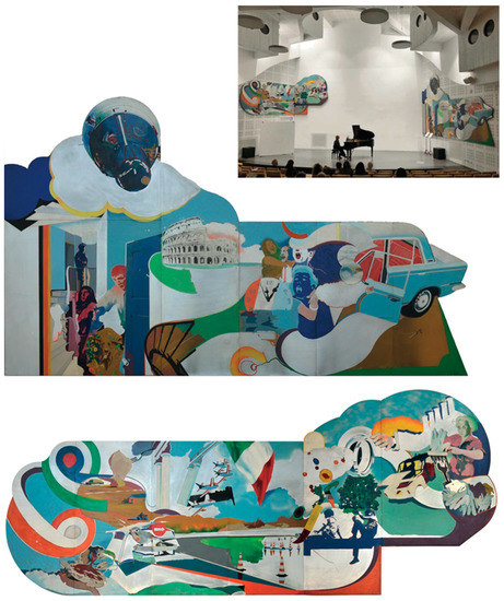 - Poldi, G.; Fiorucci, L.; Nicoletti, L.P. (Eds.) Pop ’60 Silvio Pasotti. Intorno al Fregio del Municipio di Segrate; Editoriale Umbra: Foligno, Italy, 2018. (In Italian) [Google Scholar]
