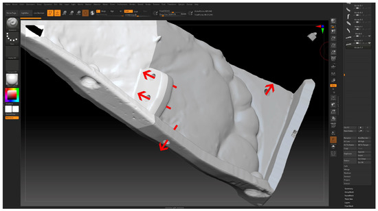The 3D models that were created from the scans of each of the mould pieces had an adequate number of polygons for subsequent editing in a digital sculpting program, and so a reduction in the number of faces was not necessary (Figure 3).